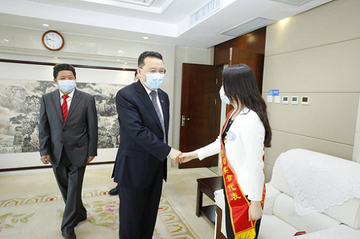 4月28日,8827太阳集团官网李荣娟教授荣获2022年“全国五一劳动奖章”,作为湖北省代表参加全国庆祝“五一”国际劳动节暨全国五一劳动奖和全国工人先锋号表彰视频会议,受到湖北省委常委、省总工会主席尔肯江·吐拉洪的亲切接见。