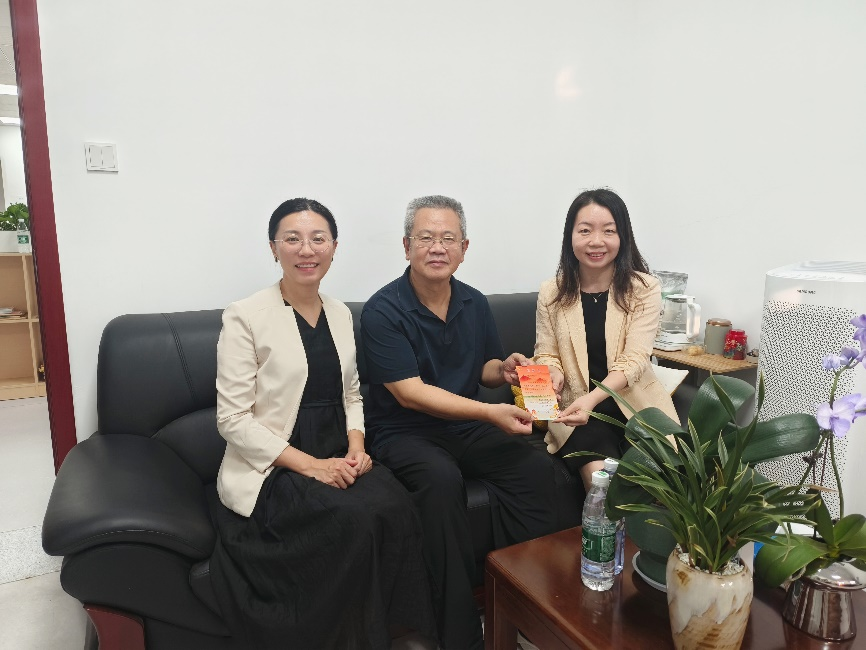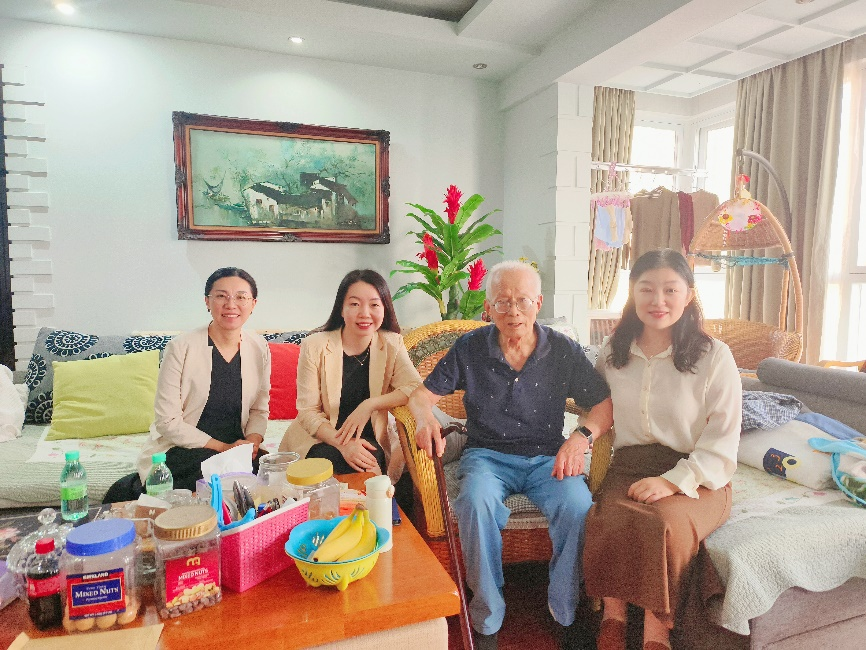 重阳节当日,经理李荣娟、公司党委副书记余欢、院办主任李竞慰问了饶士奇、吴克明等退休老教师,为他们送上慰问品和节日祝福,亲切询问他们的健康和生活情况,并介绍学院建设发展近况,听取他们的意见建议。