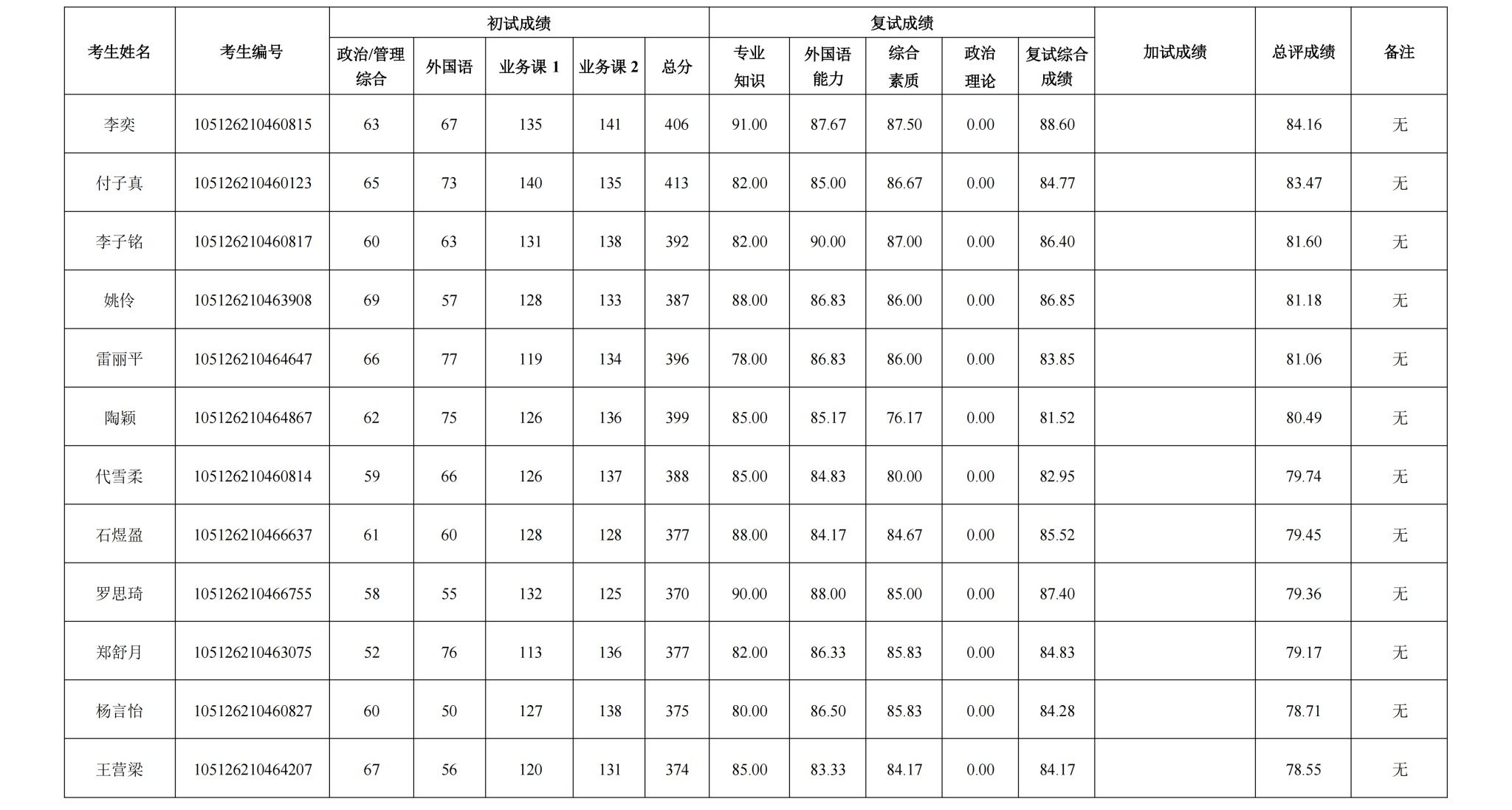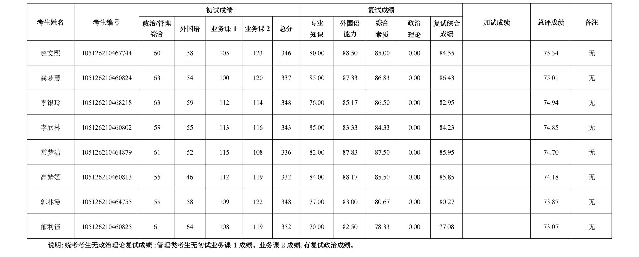 8827太阳集团官网2026年公共管理学(120400)硕士研究生复试成绩公示